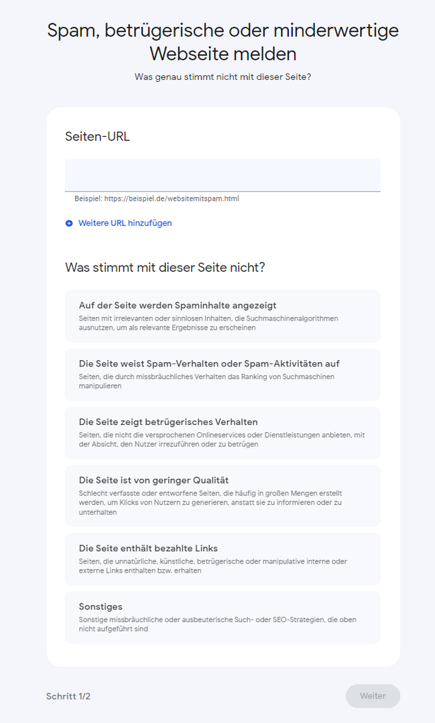 Google hat kürzlich sein Meldeformular für Suchspam überarbeitet, um die Qualität der Suchergebnisse zu verbessern. Nutzer können jetzt Spam, bezahlte Links, bösartiges Verhalten oder minderwertige Seiten in einem Bericht melden. Es gibt auch eine Funktion für Bulk-uploads von bis zu fünf Seiten mit denselben Verstößen.