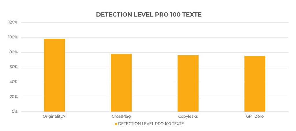 Anschließend wurde jeder Text durch die folgenden Content-Detektor-Tools getestet. Hier ist eine kurze Zusammenfassung meiner Ergebnisse. Ich habe mich am Ende nur für Tools entschieden, deren Genauigkeit über 70 % pro 100 Texte liegt.